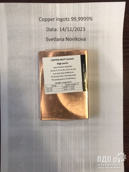 Предлагаем ионизированный порошок меди и медь в слитках на экспорт от производителя. Медь чистоты 99.999%. Весь товар сертифицирован (ТУ 1793-001-50316079-2004). Заводстская упаковка. Все сертификаты. Цена в России 155$ Оплата любая, нал, /безнал. Авиа доставка из Шереметьево, Екатеринбурга, Уфы. Скидка при объемах.