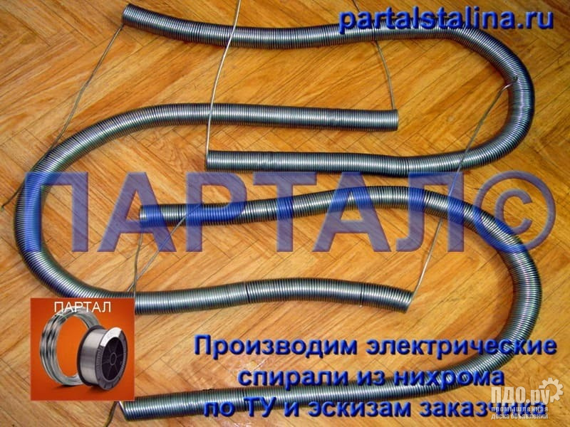 Компания «ПАРТАЛ» осуществляет профессиональное изготовление нагревательных элементов из нихрома на заказ. Мы работаем с российским нихромом и гарантируем строгое соответствие техническим требованиям заказчика. Наши услуги: Разработка и расчет спиралей по заданным параметрам (мощность, напряжение, сопротивление). Производство по предоставленным чертежам и спецификациям. Оперативные сроки исполнения заказов любой сложности. Мы обеспечиваем надежное решение для вашего промышленного оборудования. Отправьте нам техническое задание для расчета стоимости. Тел.+7 (846) 246-65-02; +7 (960) 808-25-06 https://partalstalina.ru/prodazha-spiralej-iz-nihroma